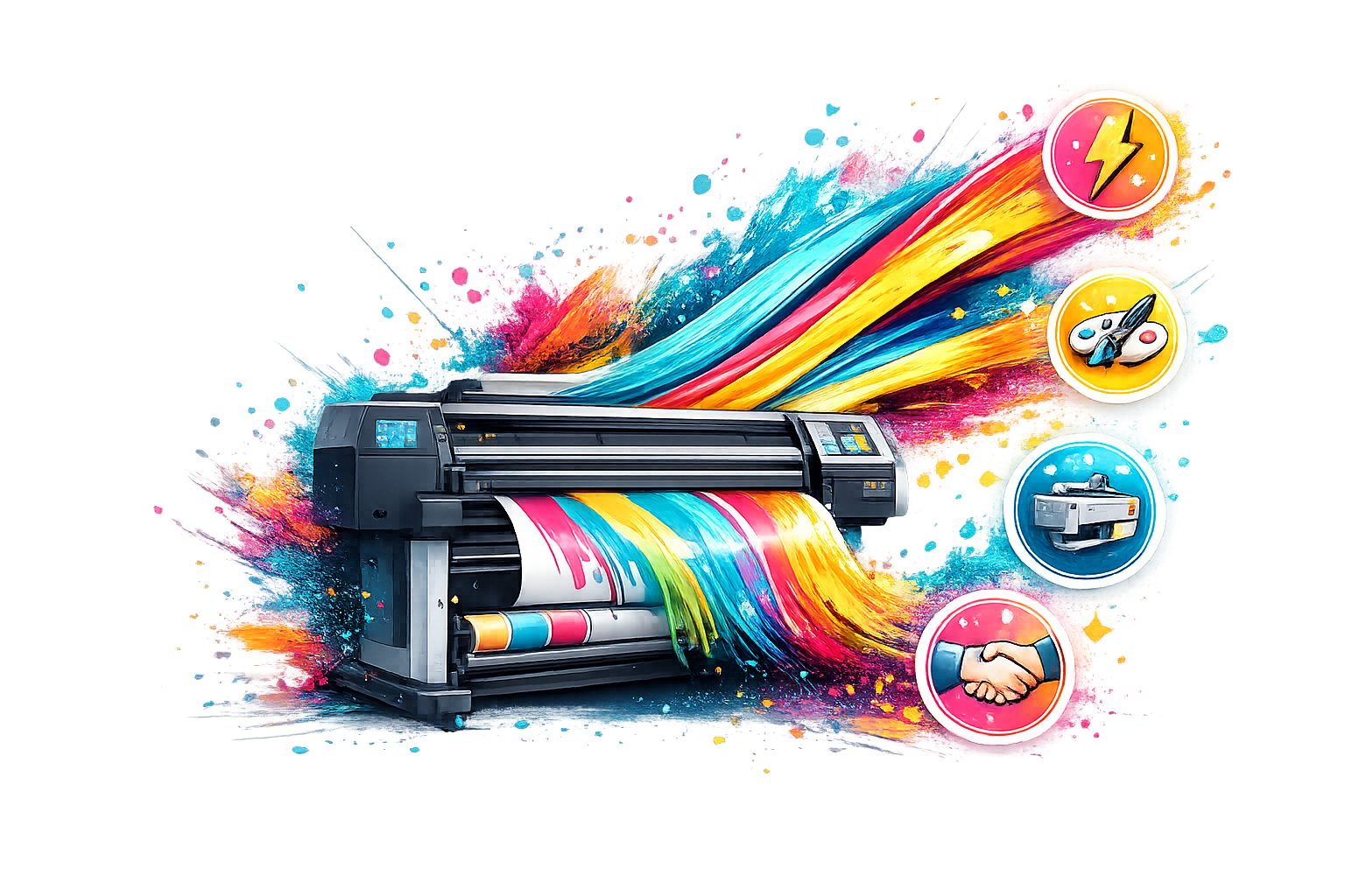 To nowoczesna technologia druku przeznaczona do tworzenia dużych materiałów reklamowych, takich jak banery, siatki mesh, plakaty czy rollupy.