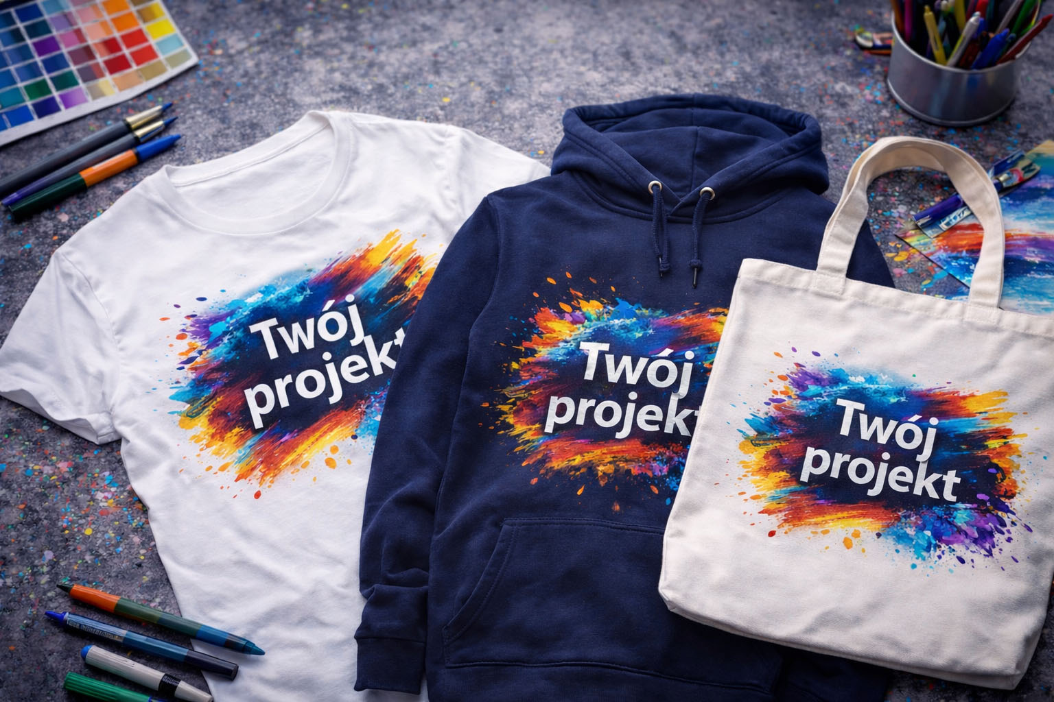 Tworzymy projekty dopasowane do Twojego stylu, marki oraz przeznaczenia nadruku.
